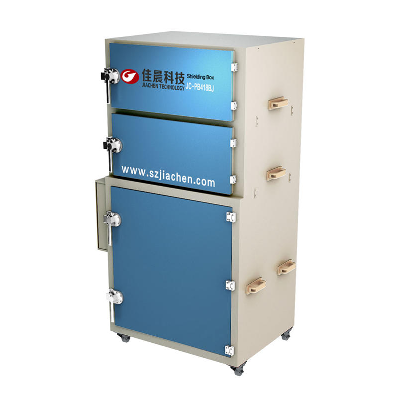 屏蔽柜是利用導電或者導磁材料制成的各種形狀的柜式屏蔽箱,將電磁能力限制在一定空間范圍內,用于抑制輻射干擾的金屬體。并對傳導和輻射進行處理,以實現給被測無線通訊設備提供無干擾的測試環境的設備。JC-P1801是一款老化實驗屏蔽箱,適用于無線網卡,藍牙,手機,路由器,平板電腦等無線通訊設備的老化,壽命檢測。內部空間大,配備網絡通信設置。